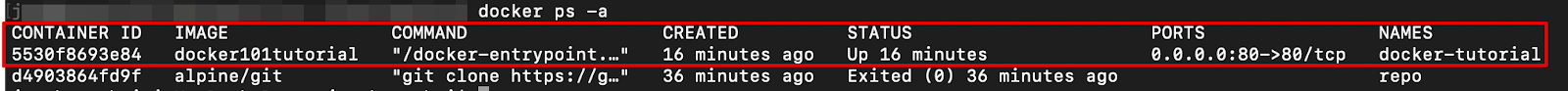 docker run -d -p 80:80 --name docker-tutorial docker101tutorial